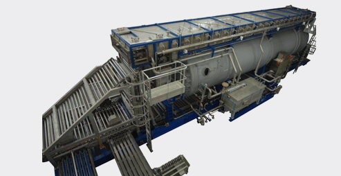 Dieser kontinuierliche Sterilisator ist speziell für mittlere bis hohe Produktionsleistungen ausgelegt und kann verschiedene Größen und Formen innerhalb der selben Maschine verarbeiten.